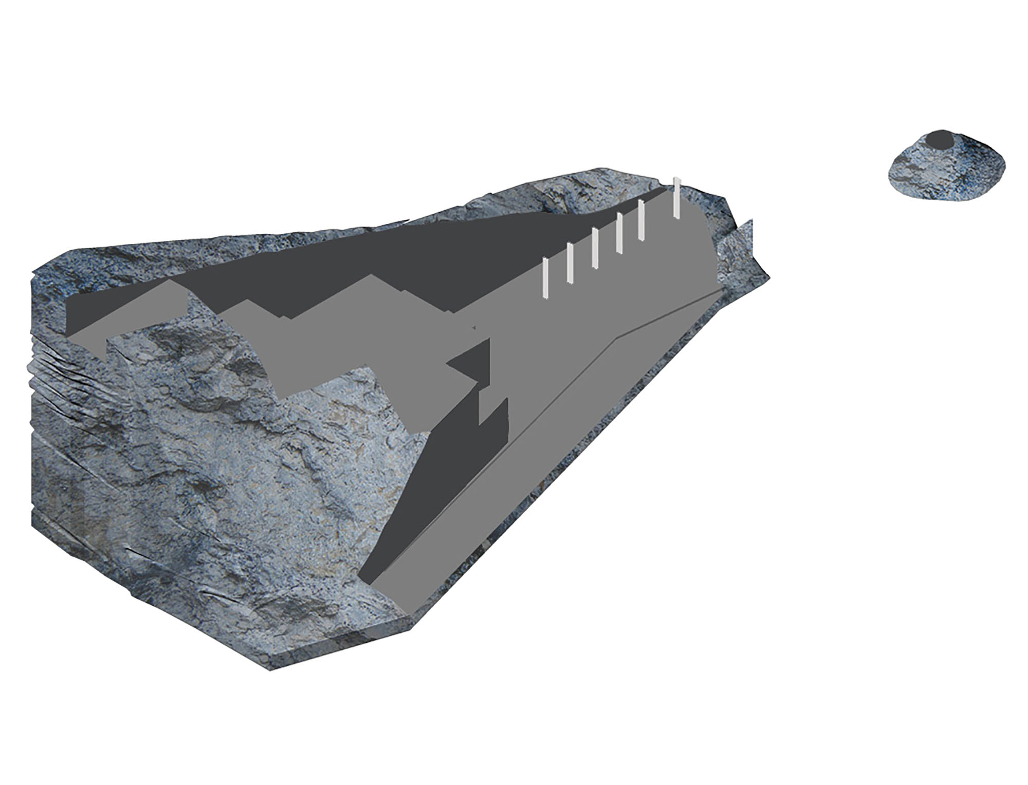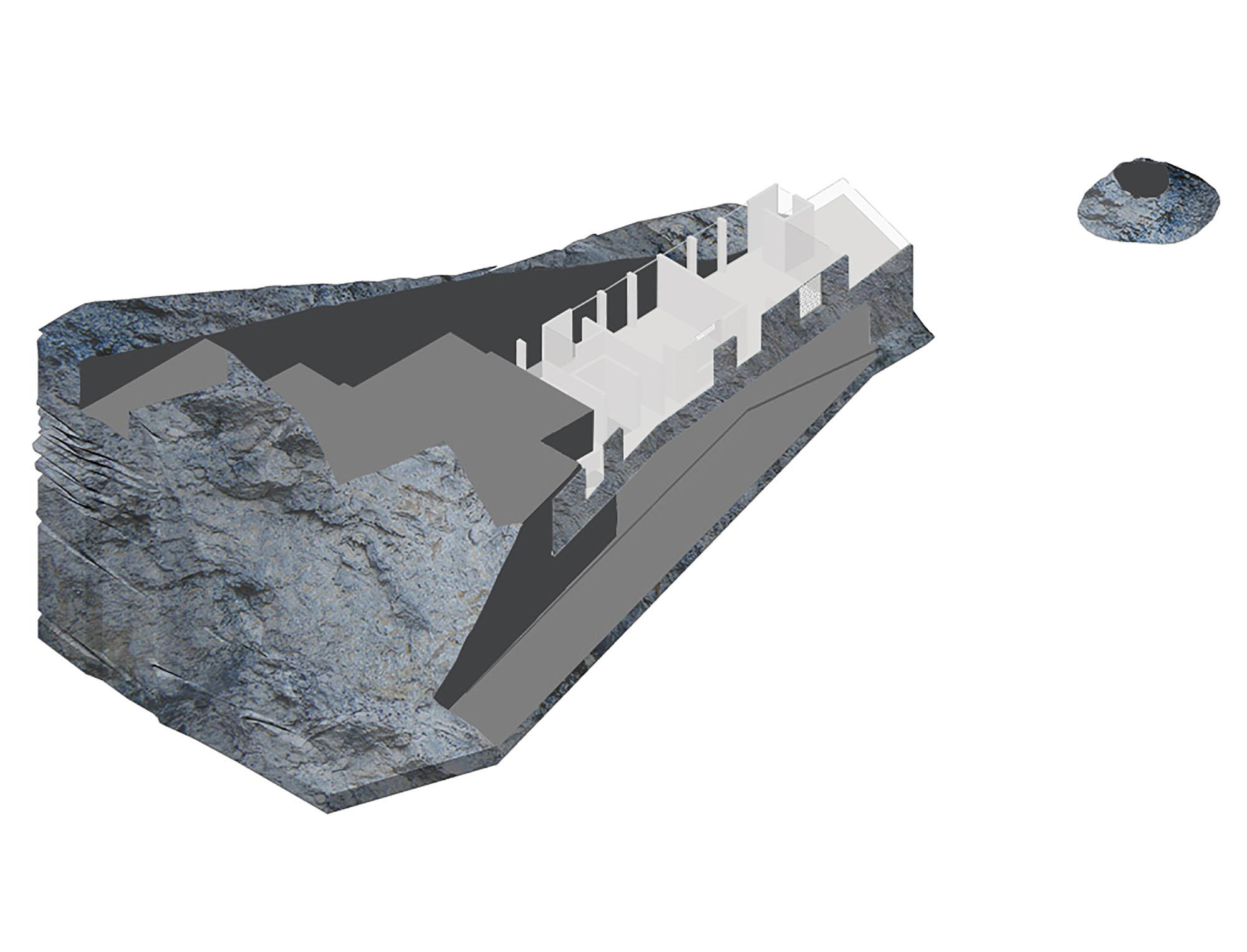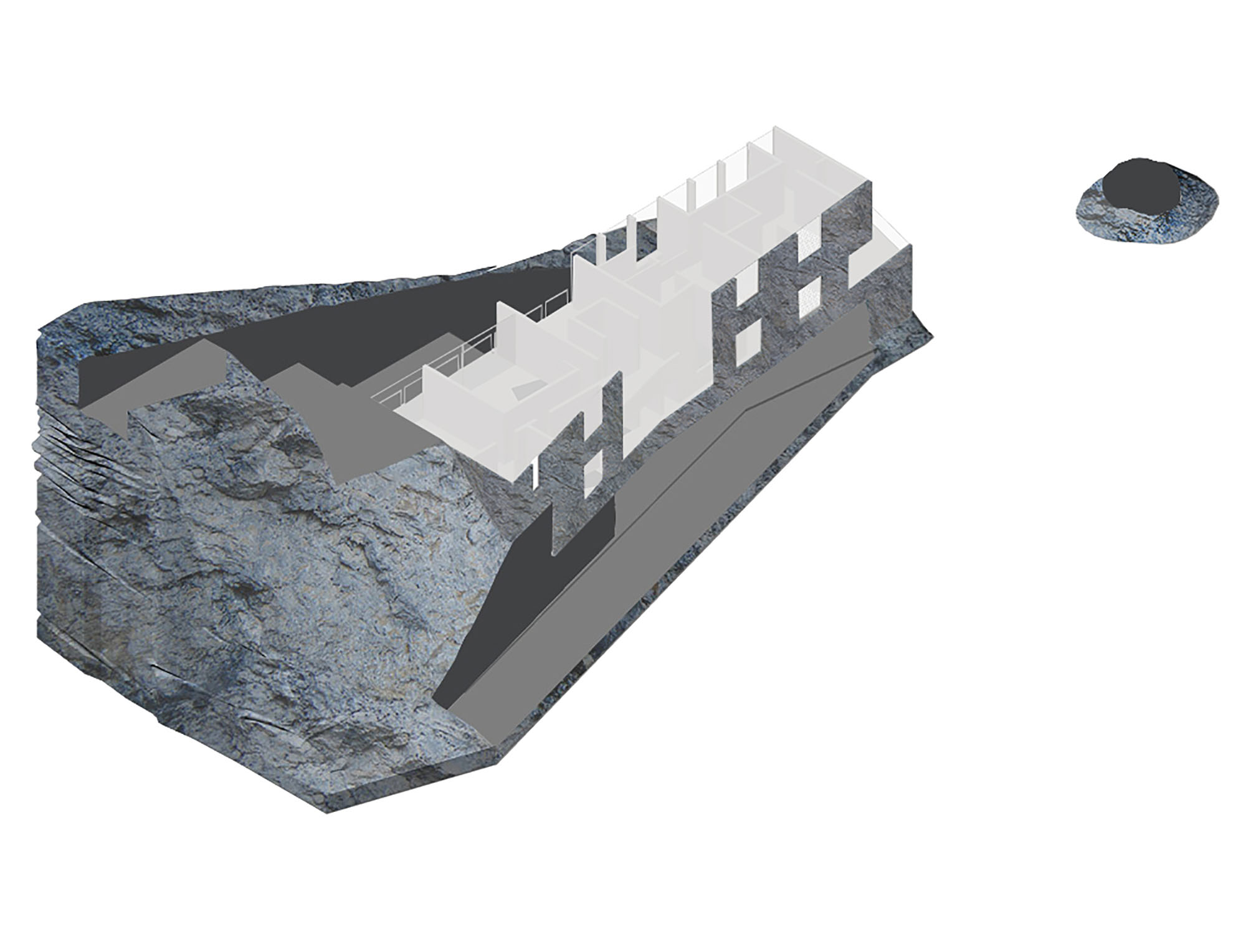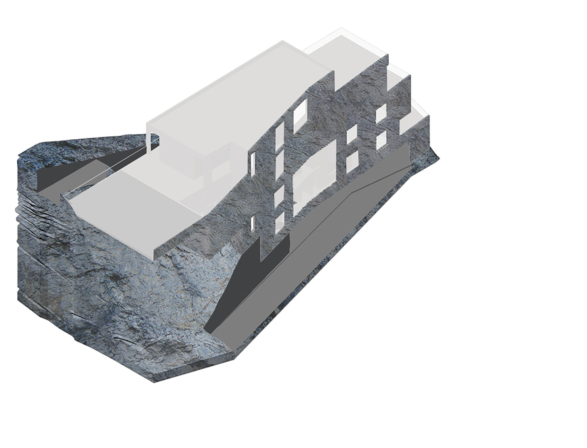 El gran volumen busca la misma altura de las propiedades vecinas, pero aprovechando la longitud del terreno consiguiendo una imagen que "completa" la montaña con un nuevo volumen construido.