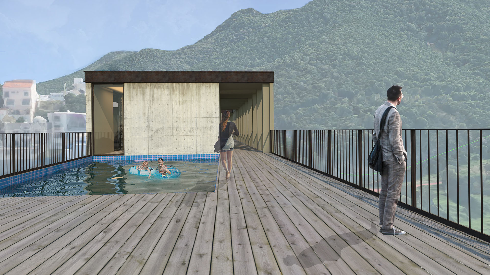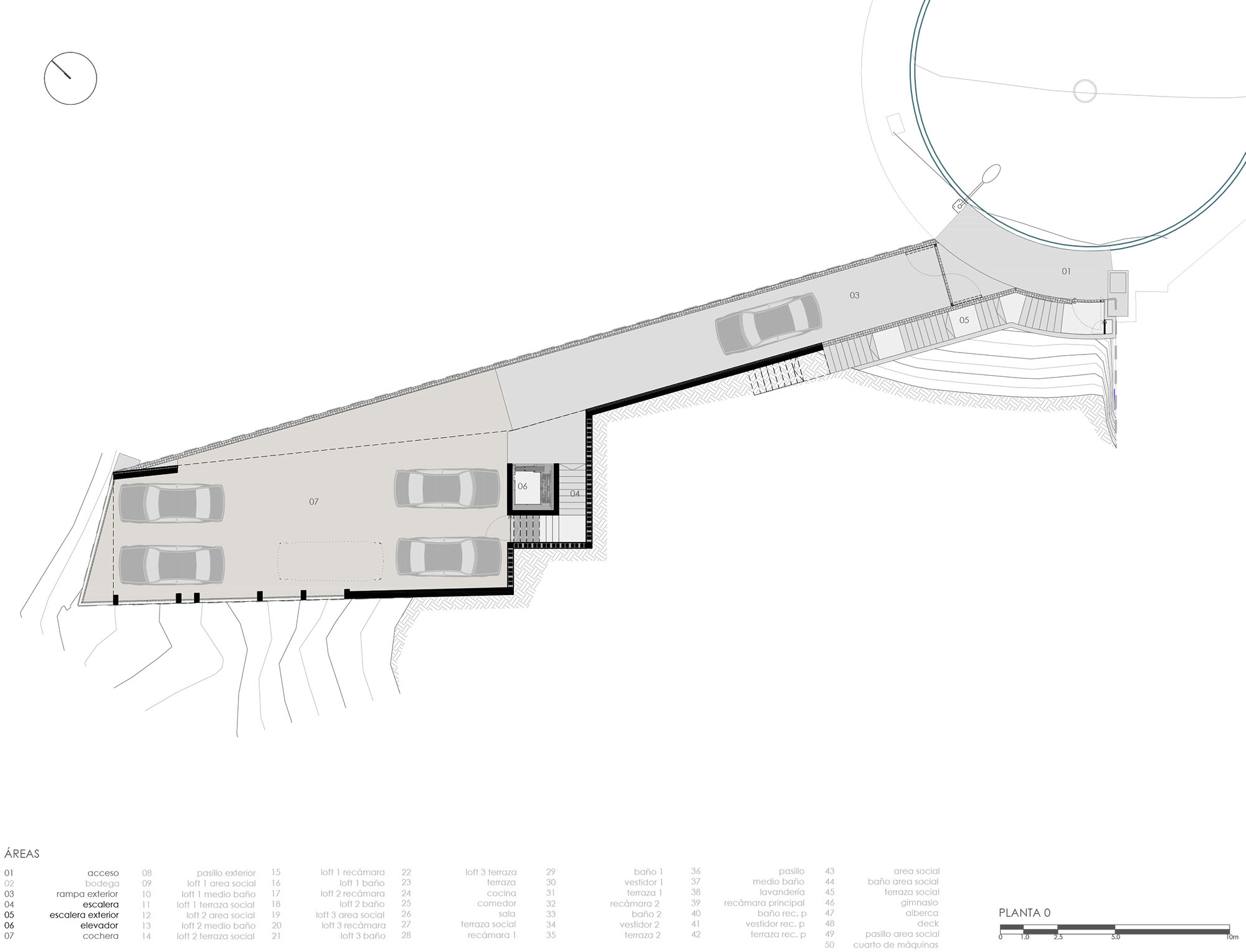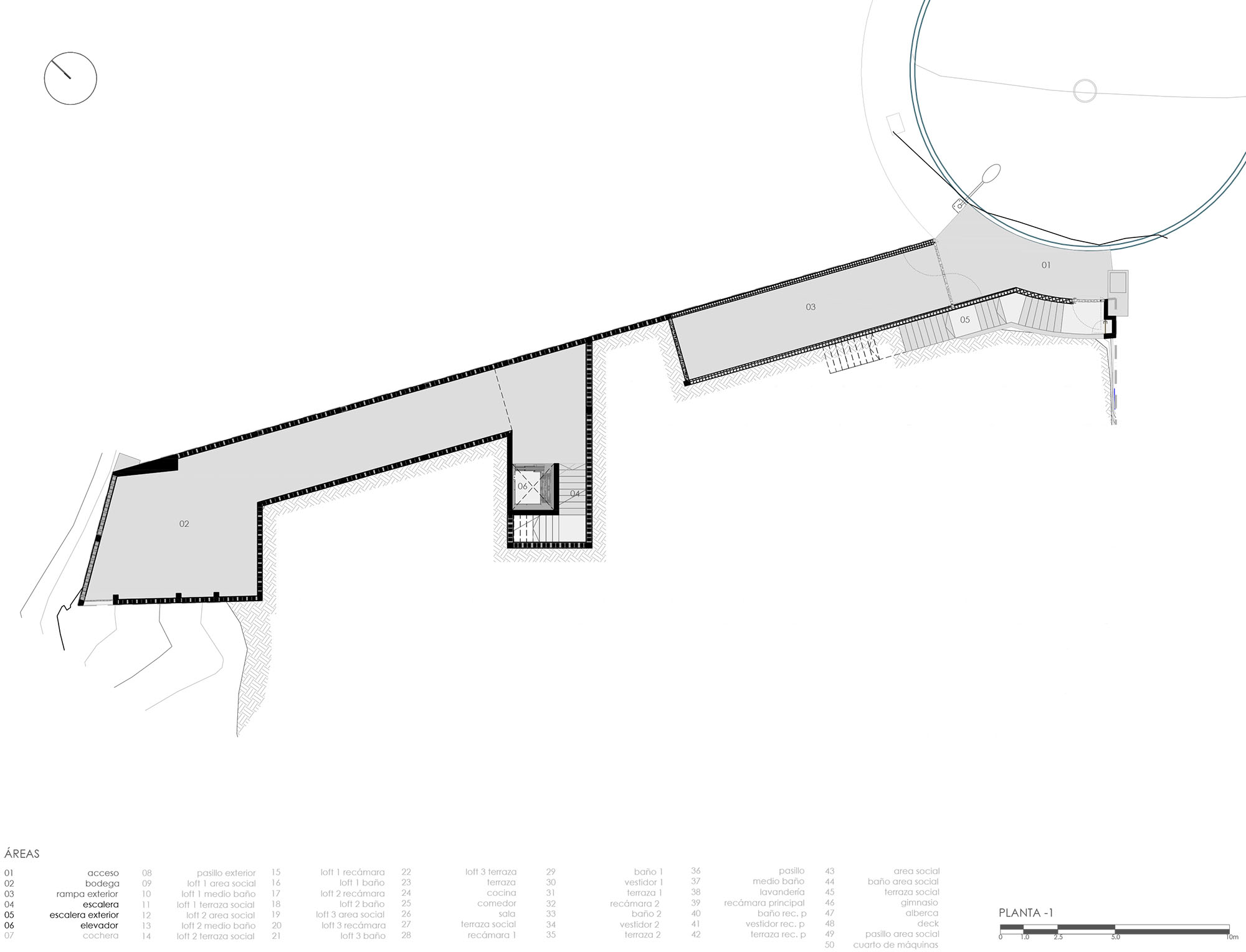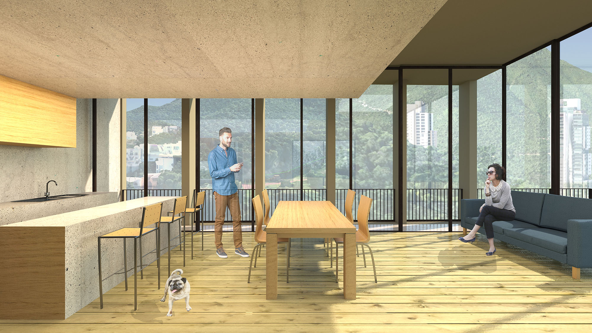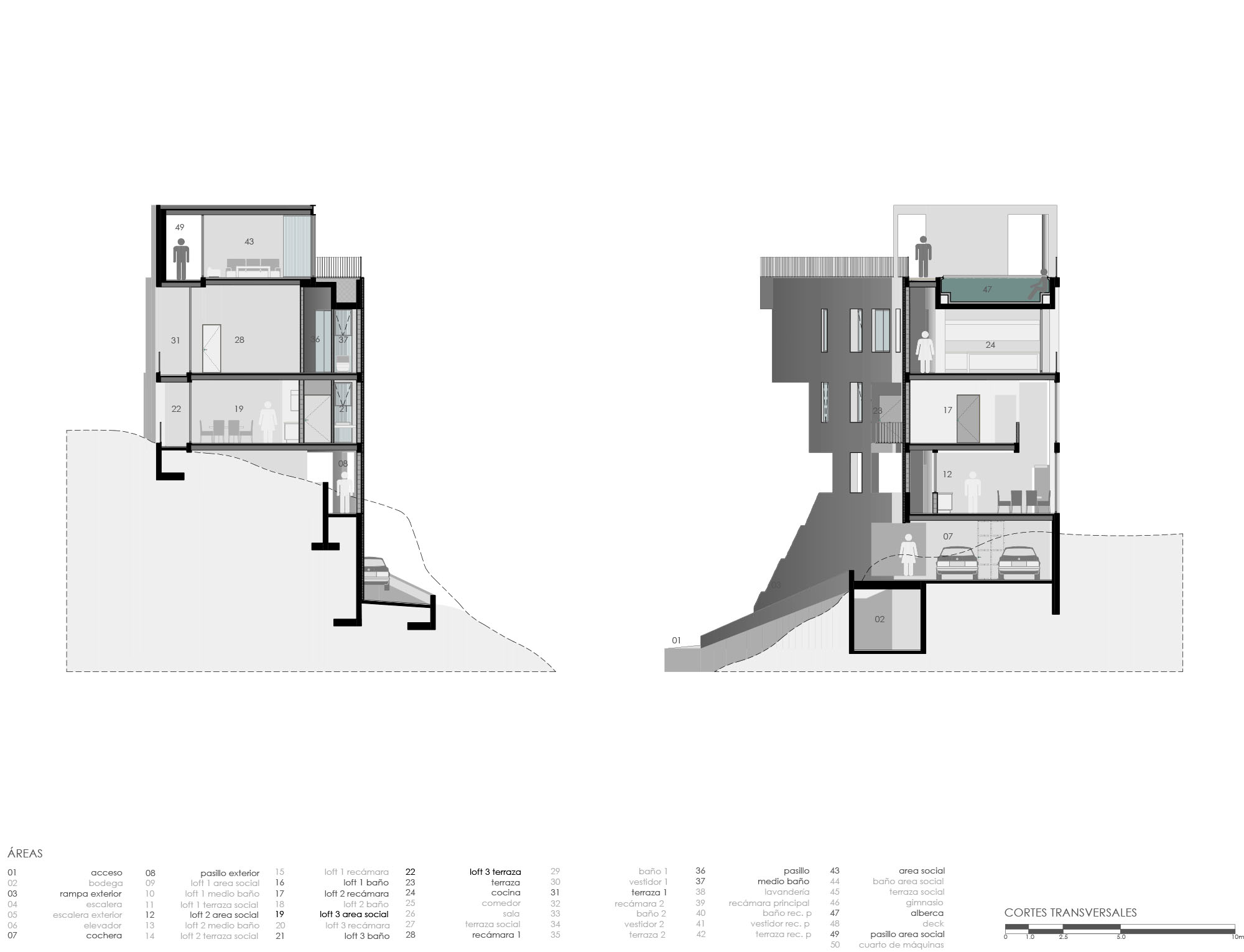 Las áreas de los hermanos menores, a doble altura, en plantas primera y segunda cuentan con su propia área social a modo de pequeños "lofts". El abuelo vive en un pequeño "departamento" en la segunda planta. El dueño del complejo, su esposa y sus pequeños hijos habitan la gran planta tercera mientras que el jardín, la alberca y otra serie de áreas comunes se ubican en una cuarta planta.