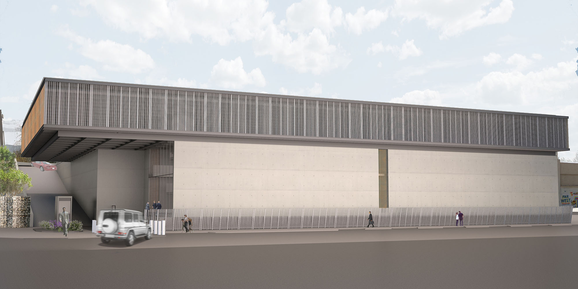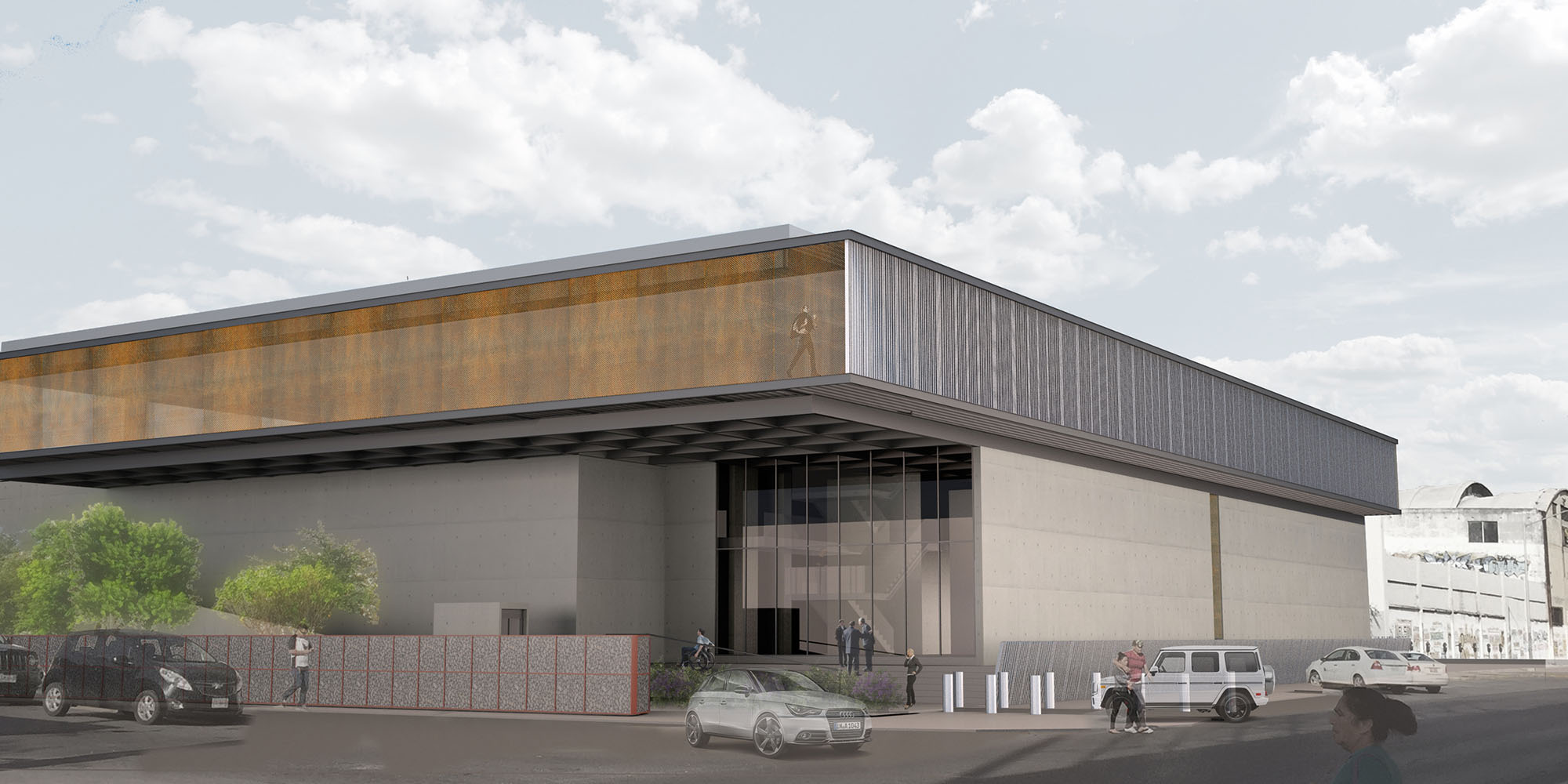 La estética del entorno sirve como inspiración para generar una imagen industrial que saca partido de su sistema constructivo de estructura metálica y concreto. Las fachadas se resuelven dejando aparente la estructura principal y resolviendo celosías y enrejados con la repetición de tubos y mallas de acero galvanizado. Las mallas se repiten también en una franja de gaviones que facilita la conservación de varios árboles existentes el sitio, lo que hace aún más amable a su entorno la presencia de este gran edificio